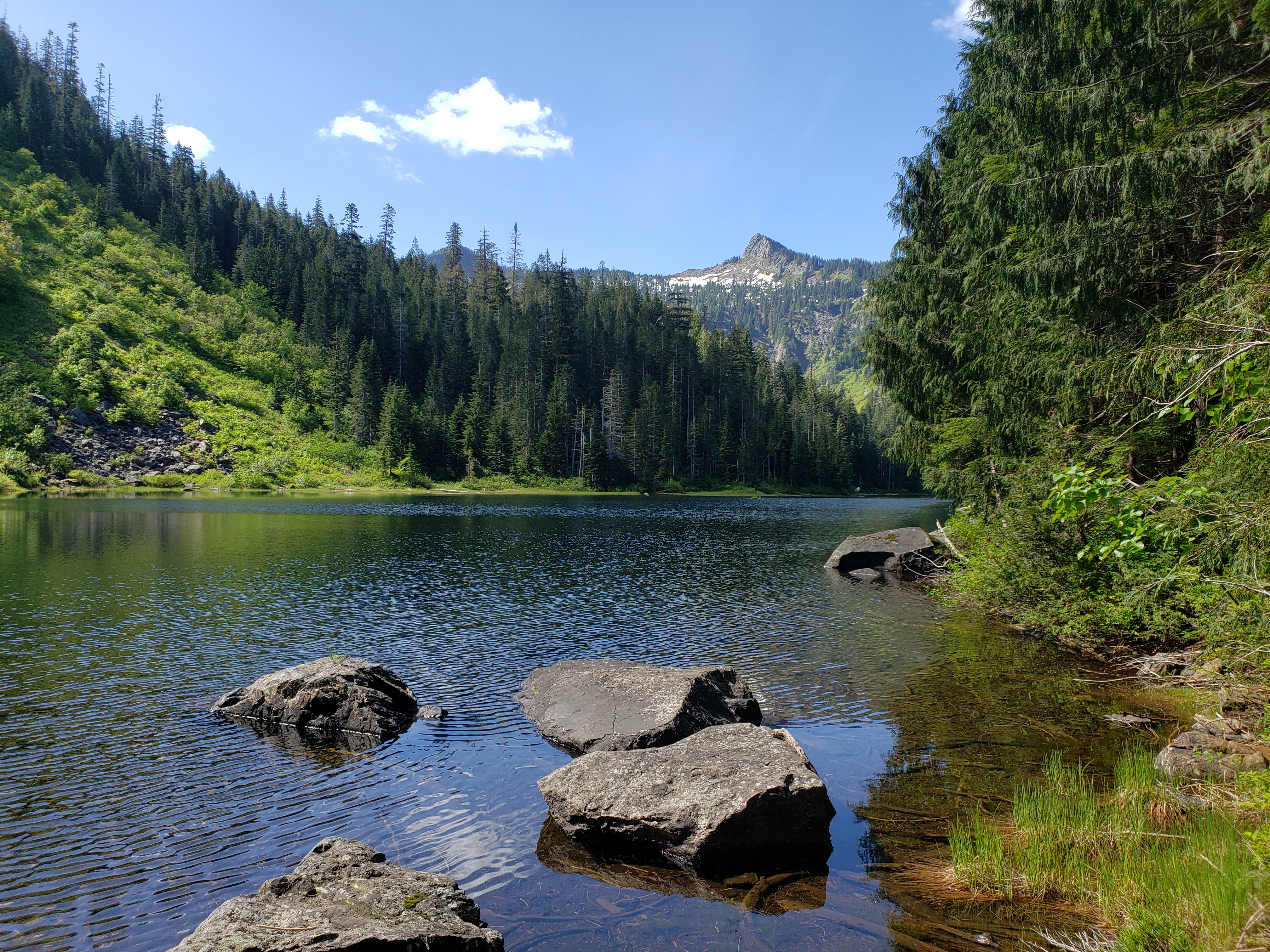 I was happy though. In that one moment, after most of an hour thinking of nothing but the next switchback turn after turn, the satisfaction of reaching the top was incredible. It was the happiest I had been in weeks, I think. Then just another few minutes to the first lake viewpoint, and I sat down on a rock jutting into the side and let every muscle in my body relax, and I just was. No self-deprecation or regret or irritation. I just was.